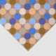 Papel tecidular num impressão geométrico moderno do século Médio de pontos gigantes, numa grelha de nove cores de coordenação - tons de bege, creme, terracota, azul claro, médio e escuro, sobre fundo esticado