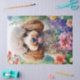 O papel tecidular apresenta um poodle adorável com a língua pendurada numa expressão amigável, enquadrado por flores coloridas e vibrantes. Um retrato brilhante, de cor d'água floral perfeito para amantes de cães, mães de cães e pais de cães. Para primavera ou a qualquer momento!