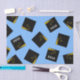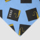 Papel tissue decorativo para presente de formatura ou festa com gorros de formatura pretos e dourados em um fundo azul claro. Edite o texto para adicionar o ano da turma de formandos.