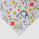 Papel tissue de presente exclusivo com tema médico, apresentando suprimentos criativos de saúde e padrão de flores.