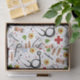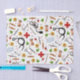 Papel de presente exclusivo com tema médico, apresentando suprimentos criativos de saúde e padrão de flores.