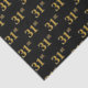 Este design de papel de tecidos apresenta o número normal "31st" com uma coloração falsa/imitação em forma de ouro. Ele também apresenta um fundo preto colorido. Talvez possa ser usado com presentes para o trigésimo primeiro aniversário de alguém, ou talvez para o trigésimo primeiro aniversário de casamento de um casal casado, ou para qualquer outro 31º evento ou ocasião. [~Z0000152]