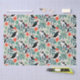 Padrão Puffin colorido e divertido com muita folhagem verde e exuberante sobre fundo bege quente. Cor verde e laranja vibrantes.