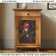 Um retrato dramático de fantasia sombria e romance gótico apresentando uma misteriosa mulher coroada usando uma rica venda crimson enquanto é cercada por corvos negros vigilantes. A figura está contra sombras profundas e cortinas de veludo escuro, criando uma atmosfera sombria e teatral. Sua coroa ornamentada antiga brilha suavemente contra seus cabelos auburn fluídos, enquanto a venda vermelha vibrante introduz um ponto focal marcante que contrasta lindamente com as penas escuras dos corvos reunidos ao seu redor. As aves parecem protetoras, curiosas e simbólicas, aumentando o sentido de mistério e folclore. A composição evoca temas de profecia, intuição, visão oculta e narrativa mítica, misturando elegância gótica com simbolismo de fantasia. A iluminação dramática e as texturas ricas criam um retrato assombrosamente bel