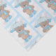 Urso de Teddy, de cor aquosa, vestindo botas de chuva azuis com um guarda-chuva azul
