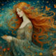 Papel De Seda Rapariga de Cabelo Vermelho com Descamação de Flor