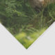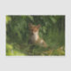 Papel tecidular com uma fotografia com uma raposa de bebês e pele vermelha e branca. Cercados por folhas e gramíneas verdes e peludas.