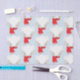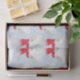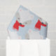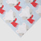 Raposa branca e cinza com cachecol vermelho festivo sobre fundo azul-inverno