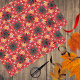 Design de papel tradicional moderno, com um padrão uniforme em estilo étnico, feito de formas geométricas em vermelho, laranja, branco, cinza e preto.