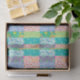 Este lenço de papel caracteriza uns retalhos dos vários padrões que incluem paisley, bolinhas e flores em roxo, em amarelo, a cerceta, o azul, o branco, o rosa, e cores verdes.