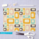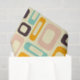 Retro geometric pattern with overlapping rectangles and ovals in orange, teal, pink, and brown on a light beige background, creating a playful, vibrant mood.