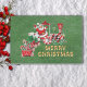 Estas folhas de papel tecidular são verdes escuras com um trem de Natal vermelho e branco com Papai Noel com rodas de chocolate picante cartas de carregando para Papais noeis e doces com o texto Feliz Natal em Dourado.