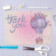 cor rosa claro com balão de ar quente azul e flores papel tissue de agradecimento