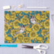 Padrão vetorial desenhado à mão com rosa e pássaros dourados. Todos os elementos do padrão são desenhados primeiro com tinta no papel e depois redesenhados e coloridos no Illustrator.