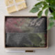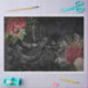Ornamentado gravado, rendas prateadas, rosas de burgandy e roteiro francês sobre fundo negro de damasco.
