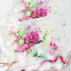 Design de lindos tecidos com composição floral romântica com rosas cor-de-rosa, verde, boque e faíscas sobre fundo branco de madeira.