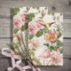 Segundo design no formato vertical, vintage botanical trabalho de arte personalizado para este belo padrão de papel da artista e designer internacionalmente licenciada, Audrey Jeanne Roberts. Rosas elegantes, botânicos, em inglês, com pássaros caninos doces, em rosa-pincel, branco e amarelo sobre um fundo branco macio e cinza de madeira. Direitos autorais.