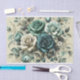 Papel De Seda Rosas Brancas e Teais