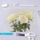 Bela fotografia de rosas brancas onde uma das flores está em foco. Este design floral é atemporal e é ideal para aniversários, casamentos ou outras ocasiões especiais.