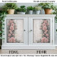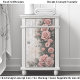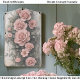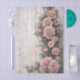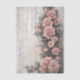 Um design floral romântico shabby chic com uma disposição em cascata de rosas cor-de-rosa pálido subindo graciosamente ao longo do lado esquerdo de um fundo de madeira rústica. As rosas florescem em uma variedade de tamanhos, desde botões delicados até flores em camadas cheias, criando um efeito natural de roseira trepadeira entrelaçada com videiras pendentes e folhagem verde suave. As tábuas de madeira desgastadas atrás das flores adicionam uma textura encantadora de casa de campo, com rachaduras sutis, tinta descascando e tons desbotados que realçam a estética vintage. A composição floral vertical deixa espaço aberto no lado esquerdo, tornando o design visualmente equilibrado, ao mesmo tempo em que permite que as rosas pareçam estar crescendo naturalmente em uma cerca de jardim antiga ou parede de casa. A paleta suave de rosa pálido, verdes empoeir