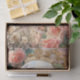 Este papel de tecido claramente romântico apresenta fadas vintagais que se cruzam com rostos angélicos. Estão rodeados de rosas rosa e brancas, de um espelho dourado e de uma gaiola de passarinho antiquada. Uma mariposa de luna fica no topo da estrutura dourada do espelho. Este tecido romântico é um retrato vertical (de lado curto para cima) design.