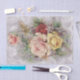 Rosas vitorianas, cor-de-rosa, amarelas e vermelhas, sobre fundo prateado impressionante com papel de escrita