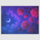 Tissue/craft/decoupage paper with beautiful illustrations of pink roses blooming under a quarter moon night sky.