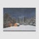 Cabana russa de inverno à noite em uma paisagem nevada.