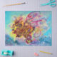Pintura aquosa colorida, branca, vibrante, em azul-aqua, turquase, teal, vermelho, amarelo-dourado, rosa, cores fuchsia, ouro e folha prateada da Bulgária Lumini (c) 2009. Os dragões chineses simbolizam tradicionalmente potentes e auspiciosos poderes, especialmente o controlo sobre a chuva, a água. O dragão é também um símbolo de poder, força, e boa sorte, imortalidade e heroísmo.