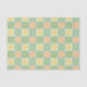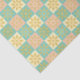 A seamless pattern with geometric floral motifs in yellow, pink, and teal on pastel squares, creating a vintage, harmonious, and cheerful design.