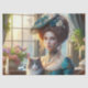 Papel De Seda Senhora Victoriana Elegante e Gato