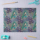 Peacocks cercados por quadros verdes com flores roxas brilhantes por todo o design. Perfeito para desacoplamento, artesanatos ou embrulhamento de presente. Certifique-se de checar a bolsa de presente!