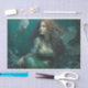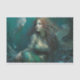 Uma sereia pára, olhando com cuidado, suas camisas vermelhas flutuando no oceano.