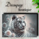 Eleve seus artesanatos DIY com o papel especial de desacoplamento de tigre branco da Decoupage_Boutique. Esse design de sereno apresenta um tigre majestoso branco com olhos azuis em greve e expressão suave cercado por delicados rosas de pincel e folhagem macia contra um fundo luminoso de névoa. Este design cria um elegante ponto focal perfeito para retretos pessoais, espaços holísticos ou espaços inspirados por eterias. COMBINAÇÕES DE CORES: branco-pérola, cor-de-rosa-claro, azul-gelo, cinzas prateadas e verde-menta melhoram a beleza natural. CARACTERÍSTICAS design: iluminação luminosa difusa, detalhes excepcionais de pele e composição floral harmoniosa aprofundam seus projetos. PERFEITO PARA: caixas de manutenção, acessórios de vaidade, divisores de quarto, aranhas de luxo, centros de meditação e sotaques tranquilos em casa. Ideal para uma variedade de projetos grandes e pequenos. #DecoupageBoutique #TigerArt #DecorEteal #FloralArt #ZenStyle