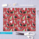 Pastores australianos lindos / Cães australianos em casacos pretos, marrons e de funil sentam-se em roupas festivas de férias. Chapéus de Papai Noel, chifres, suéteres em um fundo de férias com ornamentos espalhados.