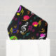 Símbolos e notas musicais coloridos com música, notas, clf, triplo, quaver,baixo,crochê sobre fundo negro