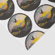 A sticker with an eagle flying over a mountain, in the style of contemporary landscape, golden light, black mountain college, fisheye lens, arts and crafts movement, mid-century illustration