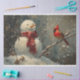Papel De Seda Snowman e uma Decoupage de Pintura a Óleo Cardeal