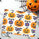 Enrole seus presentes em brilho de fantasma com esse lenço de Halloween, apresentando um padrão festivo de sorriso de pinto-o-lanternas. As abóboras cheias com rostos clássicos esculpidos estão rodeadas por delicadas flores roxas e estrelas cintilantes. Este design charmoso adiciona um toque doce e assustador a qualquer presente.
