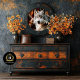 A regal grey wolf with amber eyes rests against a rust-and-black Southwest blanket—designed for statement furniture flips. The warm ember, saddle brown, and cream tones deliver cozy lodge character that fits rustic farmhouse and cabin interiors. Use on drawer fronts, cabinet panels, hutches, and armoires to create a handcrafted focal point. The large portrait scale and painterly texture lay smoothly for a refined finish, turning dressers, sideboards, and nightstands into showcase pieces.