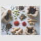 A richly detailed tissue paper design showcasing an elegant arrangement of spices like cardamom, cloves, saffron, coffee beans, ginger, and tea leaves. Perfect for food-themed gift wrapping or artisanal packaging, it brings warmth and authenticity with an organic, natural vibe.