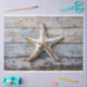 O peixe-estrela colocado numa superfície de madeira envelhecida apresenta uma atmosfera rústica e costeira, perfeita para designs náuticos ou para cenários inspirados na praia.