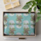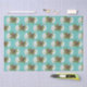 Papel tecidular para o período de férias com estrelas-do-mar, dólares de areia e padrão holly verde sobre cor azul-turquesa. Nós temos sacos de papel para presentear.