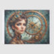 This striking tissue paper for decoupage features a captivating female portrait set against an intricate mechanical clockwork backdrop in full steampunk style. Brass gears, exposed mechanisms, Roman numerals, and burnished metallic tones create a rich industrial atmosphere inspired by Victorian-era imagination and retro-futuristic design.