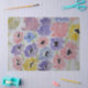 Aproveite as cores pastéis macios das flores silvestres de verão quando você escolhe esta bonito arte floral de aquarela. Pintadas com pétalas cor-de-rosa, violeta, azul e amarela, estas flores trazem um brejo de sol de verão para sua casa e vida.