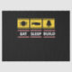 Coma e durma e crie e repita. Crianças mestras perfeitas que adoram brinquedos criativos e que constroem tijolos coloridos para hobbies e diversãoTambém bom para a festa de construção de blocos e o eterno otimista que acha que tudo é incrível com o efeito gráfico e de texto do bloco de construção.