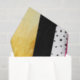 Teste padrão geométrico das listras do bloco moderno da cor no rosa quente fúcsia, no ouro, e no teste padrão de bolinhas cinzento e branco escuro da aguarela.
