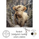 A imagem mostra uma vaca Highland em meio a árvores cobertas de neve. A vaca tem uma casaco grossa e sombria que é principalmente de cor clara com algumas áreas mais escuras, e tem longos chifres curvando para cima. Ao redor do pescoço da vaca está um cachecol azul, acrescentando um toque caprichoso à cena. O pano de fundo apresenta árvores cada vez verdes com neve nos seus ramos, sugerindo um ambiente frio de inverno. Esta imagem é interessante devido ao acessório humano sobre o animal e ao seu potencial apelo para o conteúdo do inverno ou de feriados. "A vaca em terras altas em uma floresta nevada vestindo um cachecol azul - Uma charmosa vaca em terras altas, com casaco grossa e espessa e chifres compridos, se coloca em meio a árvores cobertas de neve, fazendo um cachecol azul esbranquiçado. Esta cena de inverno capta a essência de uma atmosfera de férias serena e festiva." Inverno de vacas altas, paisagem de inverno, floresta de neve, animal de festival, cachecol azul, época de festas, terra suja, papel de tecidos de desligar, cena química.
