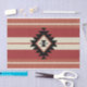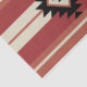 Teste padrão boémio étnico asteca com formas geométricas em cores vermelhas, alaranjadas, cinzentas e pretas em fundo listrado