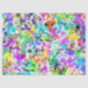 Um abstrato oftalmológico em tons de rosa, roxo, azul, turquesa, verde, morango, laranja, amarelo, preto e muito mais, faz deste um papel de tecido versátil, adequado para várias ocasiões.